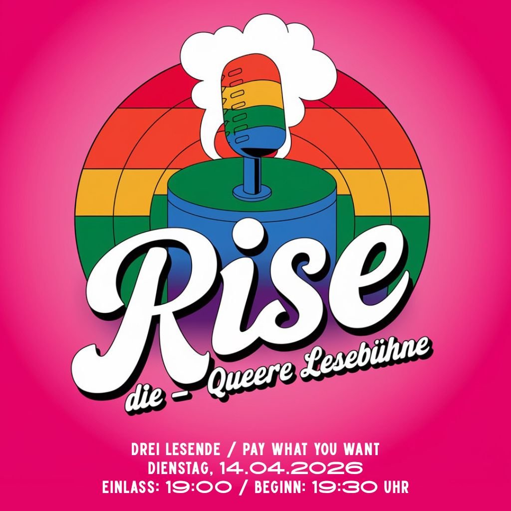 Beginn: 19:30 UhrWir freuen uns sehr auf die neue Ausgabe der queeren Lesebühne “Rise” in der Moritz Bar. Macht euch einen schönen Abend bei uns in der Bar und lauscht den ganz unterschiedlichen Worten von drei queeren Lesenden - und dazu gibt’s wie immer bei uns beste Drinks und gemütliche Stimmung. Natürlich gibt’s zwischendurch auch Pausen zum Quatschen und ihr könnt auch jederzeit später dazustoßen. Einlass ist ab 19:00 Uhr und um 19:30 Uhr beginnt die erste Person.